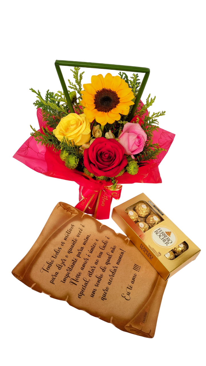 ♡ Peteca Girassol + 3 Rosas mistas