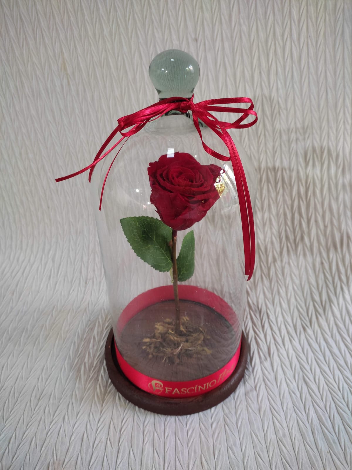 Rosa conservada, Cúpula de vidro, base de madeira.